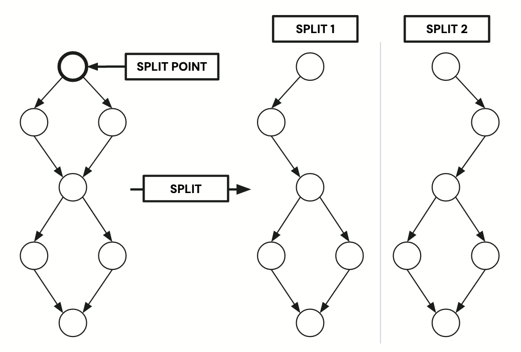 On a technical level, splitting is best illustrated using the control flow graph (CFG) of a given CVL rule.